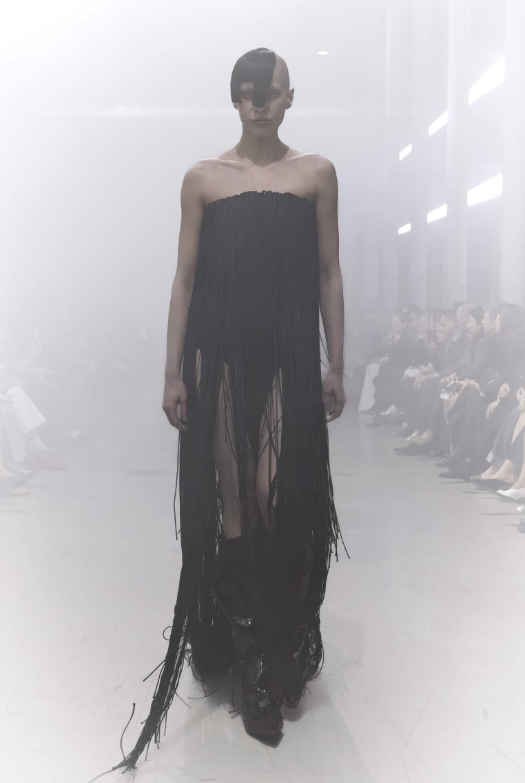 Estos looks desafían la sastrería tradicional, priorizando la sensación de resguardo sin perder la sofisticación oscura que define a la casa. La elección de materiales pesados y acabados desgastados refuerza la idea de una elegancia que ha sobrevivido a los elementos.