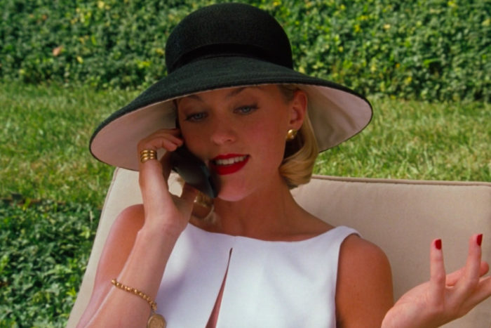 También hay que mencionar a Cruella, perdón a Meredith, la malvada madrastra que brinda un ejemplo de cómo llevar unos labios y uñas rojas p e r f e c t a s que contrastan el vestido blanco y sombrero negro mientras está tomando el sol en la piscina. Algo que en los 90s era muy cool y que probablemente estuvo inspirado en Vivian Ward de Pretty Woman. Way too cool!