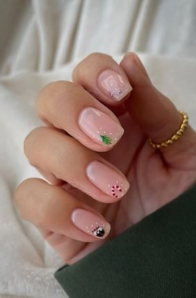 Si prefieres algo discreto pero llamativo, los diseños minimalistas con detalles navideños son tu mejor opción. Líneas doradas, pequeños cristales o diseños en una sola uña sobre tonos neutros como beige, crema o nude, son un hit esta temporada.