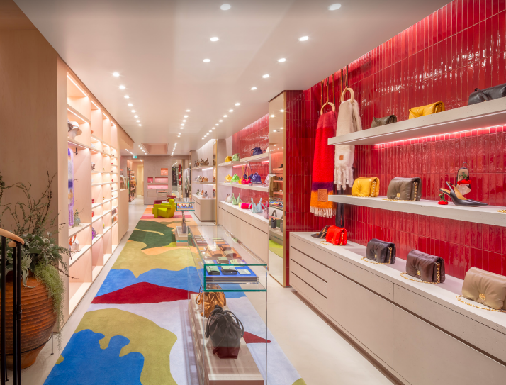 La tienda presenta una completa oferta de prêt-à-porter y accesorios para mujer, incluyendo bolsos, zapatos, pañuelos, sombreros, joyas, carteras y tarjeteros, complementados con piezas selectas de la creciente colección de arte de la marca.