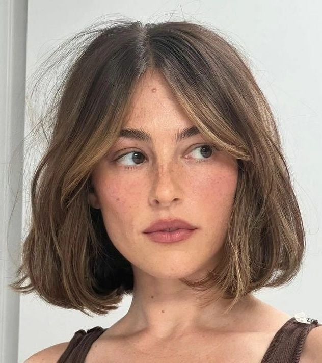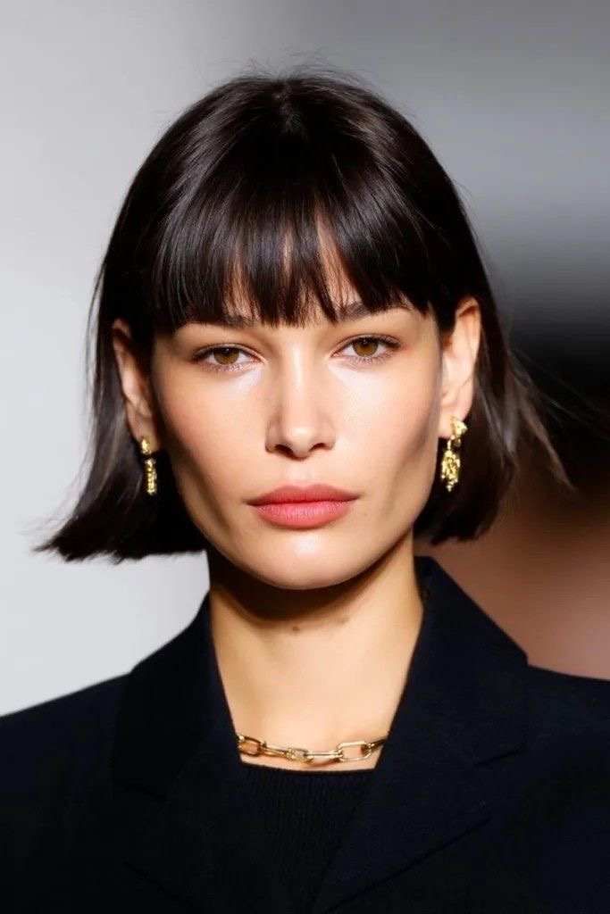 Los cortes Bob siempre están presentes, pero este es uno de los favoritos que hemos estado viendo últimamente. Se detiene justo en la línea de la mandíbula, creando un efecto estructurado, moderno y favorecedor para el rostro.