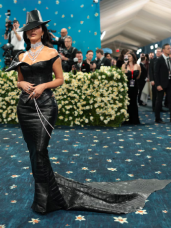 10. Aunque no tan reciente, pero muy destacable considerando el Magno evento, durante la Met Gala de 2025 eligió un vestido largo ajustado de cuero negro con corte sirena y tirantes que proporcionaron un escote asimétrico pronunciado. Como accesorios, utilizó un sombrero negro de ala ancha, guantes largos y varios collares plateados brillantes con una cadena en la mano.