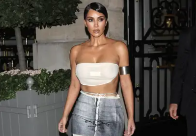8.Kim también lució un atrevido conjunto vintage de Maison Martin Margiela conformado por un top bandeau transparente que realzaba sus curvas y una falda crop de la colección Primavera/Verano 1999 del diseñador.