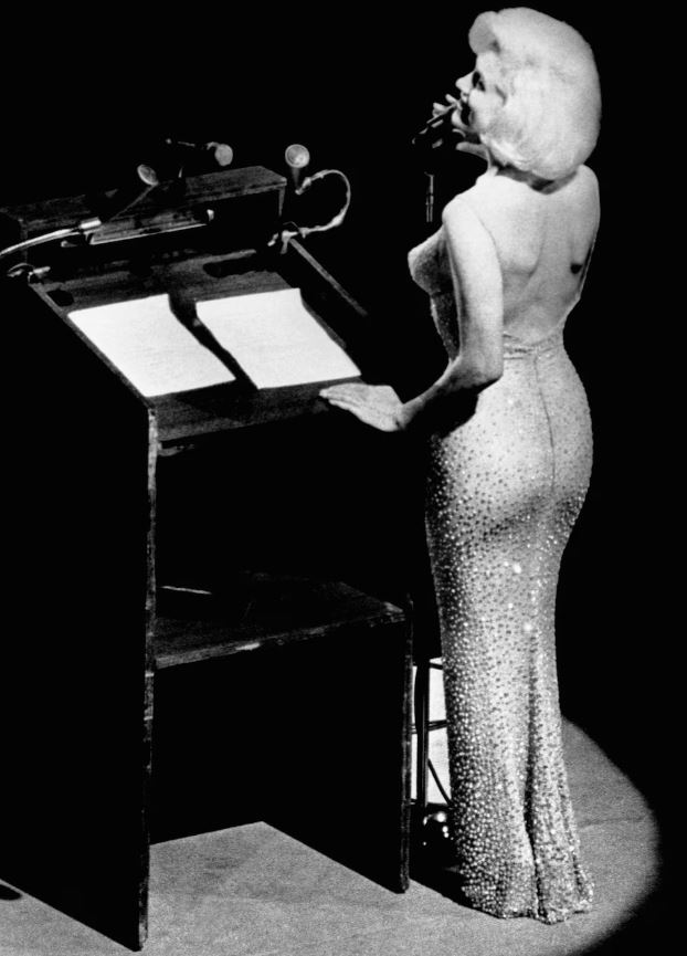 Su último gran momento fashionista también merece mención: el vestido ceñido de lentejuelas doradas con espalda descubierta que usó para cantar “Happy Birthday, Mr. President” a John F. Kennedy en 1962. Esa prenda es considerada una de las más sensuales de la historia, y causó revuelo cuando Kim Kardashian la usó brevemente en la Met Gala de 2022.