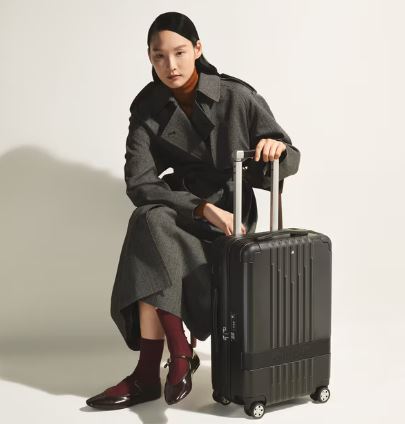 La cápsula Happy Holidays incluye un bolso tote, un minibolso cruzado y un bolso de mano, elaborados en lona bordada de color marfil con detalles de piel negra. Esta colección de temporada se completa con un trolley #MY4810 de tamaño cabina, así como con un estuche para un artículo de escritura y un cuaderno en piel Sartorial estampada.
