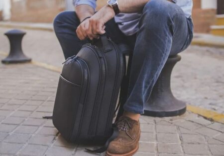 La mochila Montblanc Companion, un sofisticado accesorio de diario en piel granulada de color caqui, cuenta con bolsillos exteriores con cremallera cuidadosamente situados para ofrecer una organización fácil.