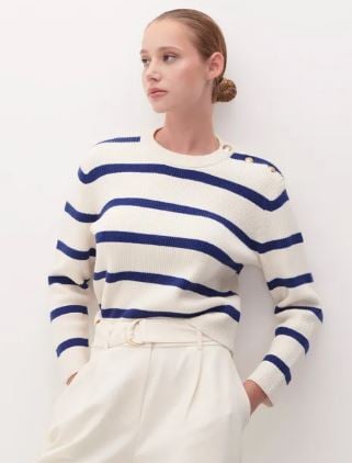 Casas de moda como Prada, Totême y The Row han lanzado nuevos diseños de sweaters de rayas bajo una nueva estética con cortes rectos y colores más neutros. El resultado son prendas que conservan la esencia marinera de siempre, pero con un enfoque hacia la temporada cozy. Las rayas en tonos neutros – negro, beige, gris o azul marino – dominan las propuestas, aunque también aparecen combinaciones más atrevidas en blanco y rojo o en gamas pastel.