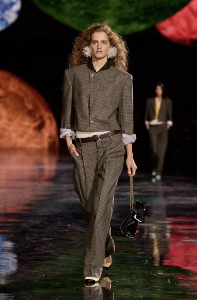 Esta chaqueta no es una elección al azar. Abrió el primer look del desfile primavera verano 2026, marcando el debut de Matthieu Blazy al frente de la maison francesa.