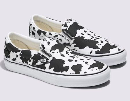 Las firmas de lujo han sido las primeras en apostar por este estampado rústico. Marcas como Prada, Steve Madden, Vans, Adidas y Stella McCartney, entre otros, han reinterpretado el print de vaca en botas altas, botines, mocasines, tenis, zapatos de piso y más, convirtiéndose en una propuesta versátil que se adapta tanto a un look de oficina con traje sastre, como a un conjunto de fin de semana con jeans y blazer oversized.