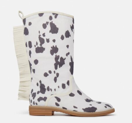 Lo más interesante de esta tendencia es que no se limita a un solo estilo. Las botas vaqueras de estampado de vaca, por ejemplo, son el must-have de la temporada, ya que combinan a la perfección con vestidos boho, faldas midi y hasta con minivestidos ajustados para crear contraste.