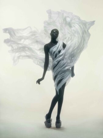 Iris van Herpen, quien fundó su Maison homónima en 2007, es ampliamente reconocida como una de las diseñadoras más vanguardistas de la moda, expandiendo constantemente la frontera entre la naturaleza, la cultura y la innovación. Su práctica revela la belleza invisible de los sistemas vivos, traduciendo fuerzas orgánicas, microrritmos y vida subterránea en formas visibles. Al fusionar la alta costura con la ciencia, el sonido, la tecnología y la artesanía, construye un nuevo lenguaje sensorial para la sostenibilidad, a la vez poético, preciso y con una profunda consciencia material. Al igual que el Art Nouveau en sus orígenes, su obra activa la naturaleza, convirtiéndola no solo en un motivo, sino en una colaboradora.