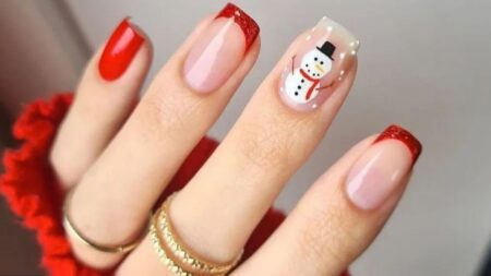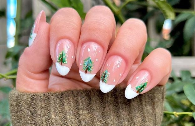 Independientemente del corte de la uña o el tono del esmalte, añadir diseños típicos como el mono de nieve, el copo de nieve o el árbol de Navidad, jamás dejará de ser bonito para las uñas en esta ápoca.