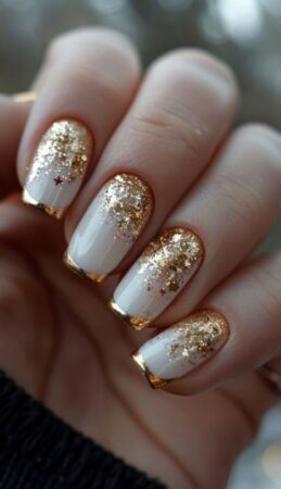 2.- French manicure con detalles dorados