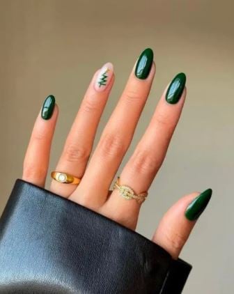 El verde oscuro, cercano al tono de los pinos navideños, es una alternativa sólida al rojo tradicional. Su carácter profundo transmite elegancia y combina bien con prendas en tonos neutros o tejidos invernales.