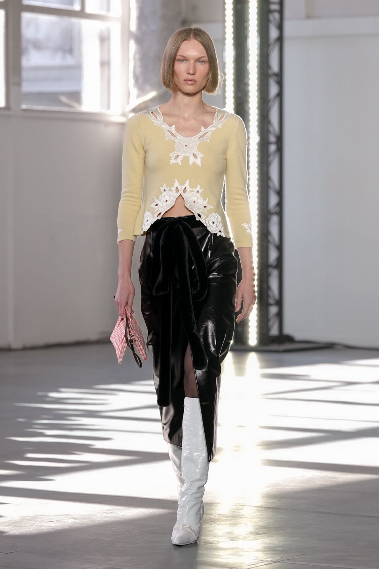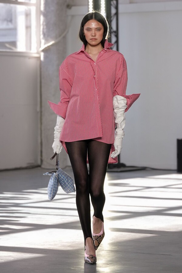 Muchos looks mostraron vestidos cortos mezclados con faldas largas, así como aberturas y movimiento. Algunas piezas tenían siluetas amplias y relajadas, otras eran más estructuradas y con volumen.