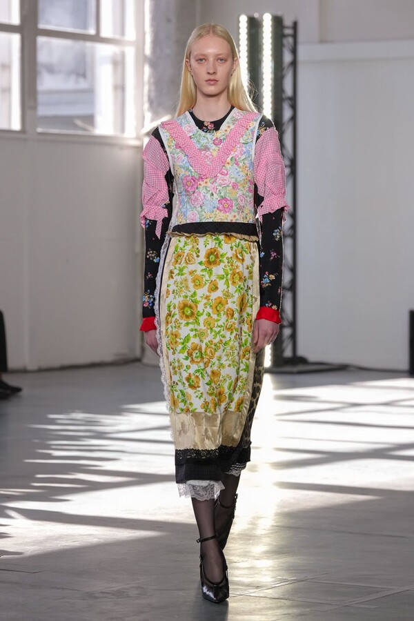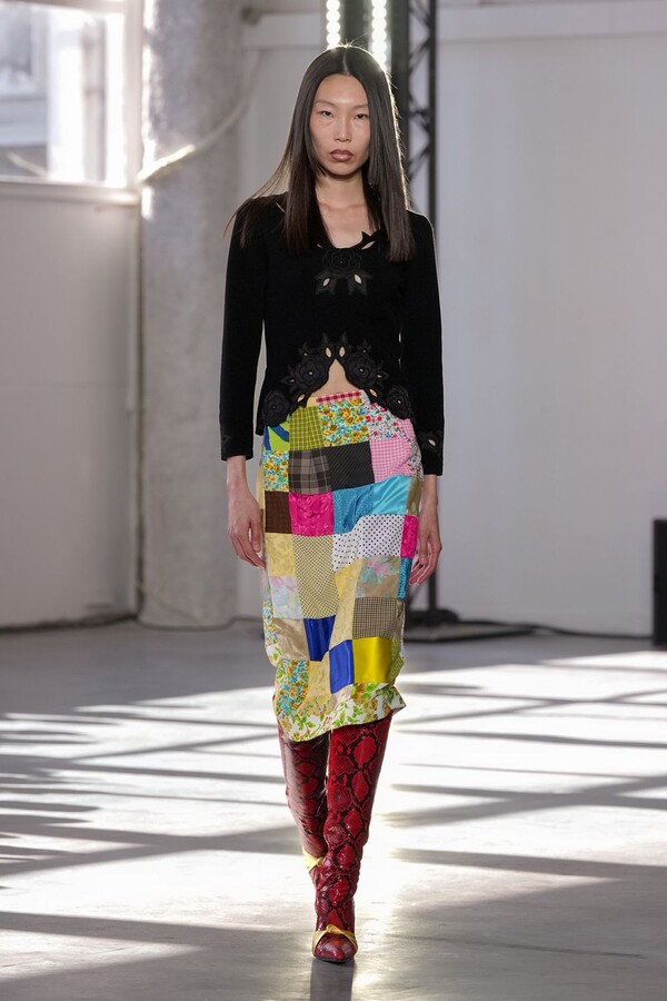 Algo particular de esta colección fue que en la colección habían piezas creadas a base de retazos de colecciones pasadas de la firma, estilo patchwork. Aunque la paleta de color fue mayoritariamente neutral, algunos looks integraron colores vivos como verde, rosa, amarillo y rojo, dando vida a la colección.