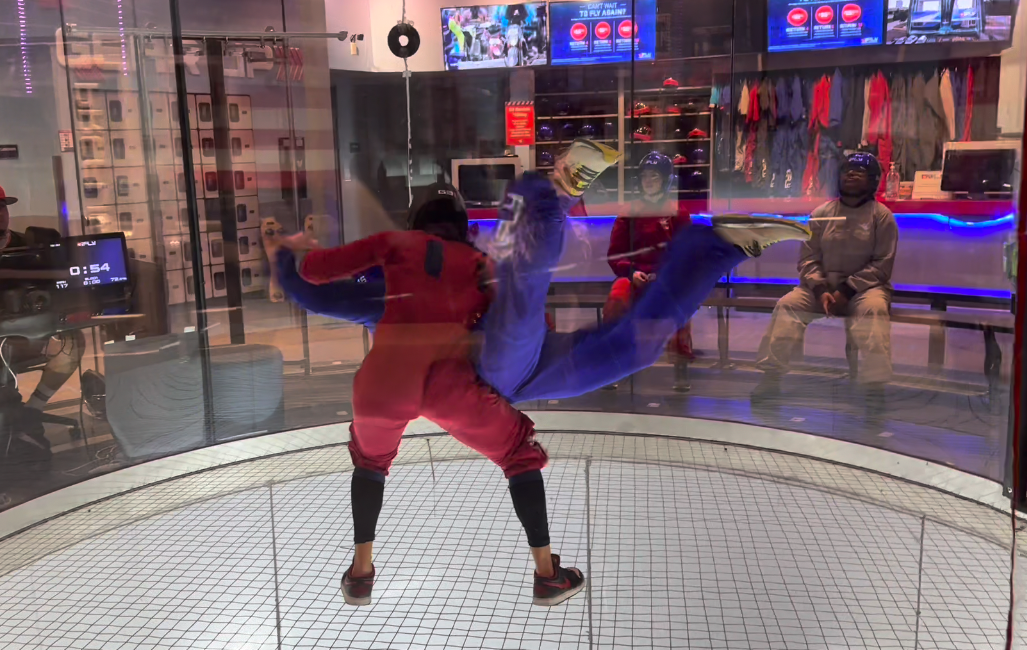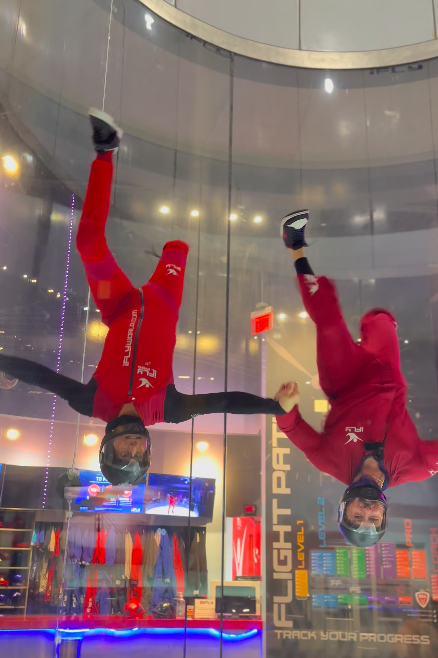 Después del shopping, llegó el momento de jugar. Fuimos a Topgolf, un simulador de golf moderno con música, comida y vistas espectaculares. Era la primera vez que jugaba y, entre risas, descubrí que no se me da nada mal. Más tarde, visitamos iFly, un simulador de paracaidismo que se convirtió en el favorito del grupo. Flotar en el aire fue tan divertido como liberador: una experiencia que te hace sentir que puedes con todo.