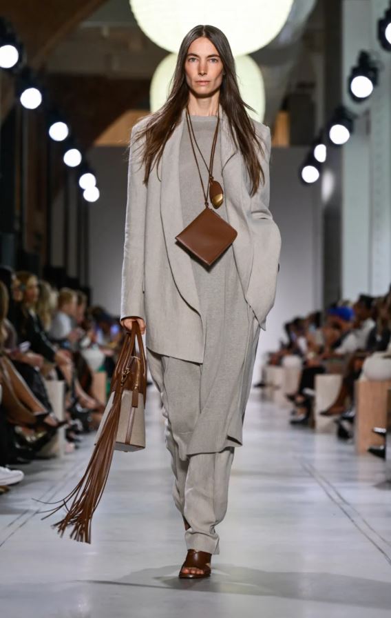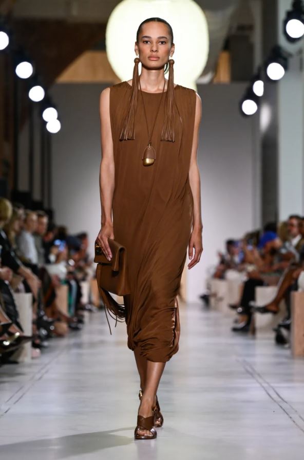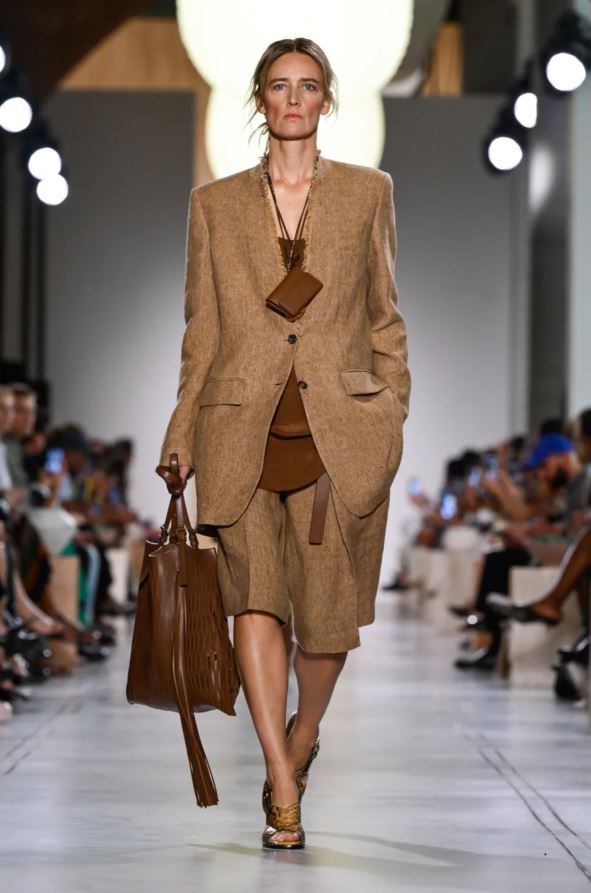 El diseñador citó Sicilia como inspiración para la rusticidad de la colección, sus tonos que van del amanecer al atardecer y los tonos naturales, pero también dejó ver la eliminación de las estructuras rígidas de las chamarras y la incorporación de flecos artesanales a los bolsos y vestuarios fáciles de llevar para las mujeres en movimiento.