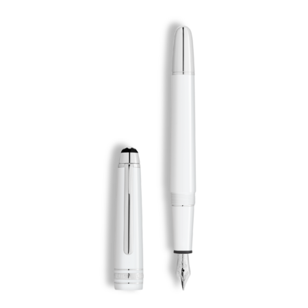 La Meisterstück White se presenta en tamaño Classique y está disponible como pluma estilográfica, rollerball y bolígrafo. La clásica silueta presenta un capuchón y un barrilete elaborados en resina preciosa blanca, que contrasta con los detalles platinados y el cono de metal. La caperuza del capuchón en metal se corona con el emblema Montblanc en resina preciosa blanca y negra, mientras que el plumín en oro Au585 rodiado de la pluma estilográfica está decorado con el motivo distintivo Meisterstück como símbolo de excelencia, realizado por los artesanos de Montblanc en la manufactura de Hamburgo.