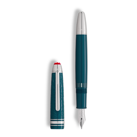 La colección Montblanc Meisterstück Romeo & Juliet, inspirada en uno de los grandes romances de la literatura universal, narra una historia de devoción y arte. El capuchón y el barrilete de la pluma estilográfica Meisterstück Romeo & Juliet – Romeo LeGrand están realizados en resina preciosa de color verde azulado y decorados con detalles platinados. En el capuchón, el patrón de hojas evoca la escena íntima en el jardín de los Capuleto, donde la joven pareja se declara su amor por primera vez, mientras que el motivo de espinas grabado en el cono representa la pasión del mundo interior de Romeo. El plumín de oro macizo Au585 rodiado incorpora el nombre de Romeo, junto con los intrincados símbolos de un corazón y una daga.