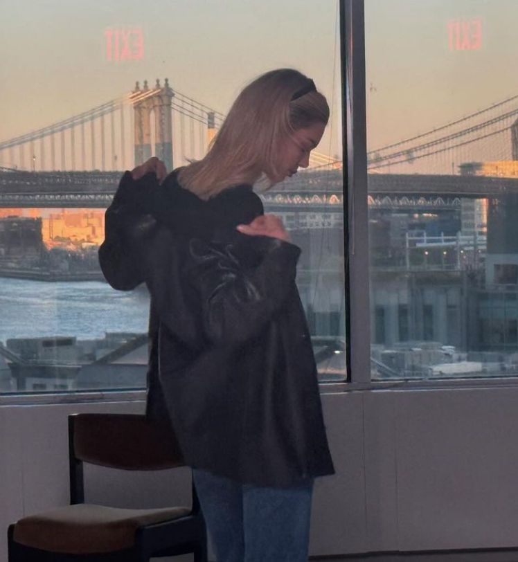 Kendall publicó en Instagram una serie de fotografías que llamó Blonde donde posa luciendo su nuevo color de cabello, vistiendo un outfit sencillo de jeans, blusa negra y chamarra de piel negra.