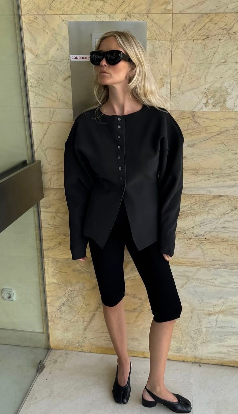 Ya no se llevan solo hacia lo deportivo. En la parte superior se acompañan con blazers, camisas, camisetas básicas, cardigans o tops más elevados y elegantes, según el estilo que quieras lograr.