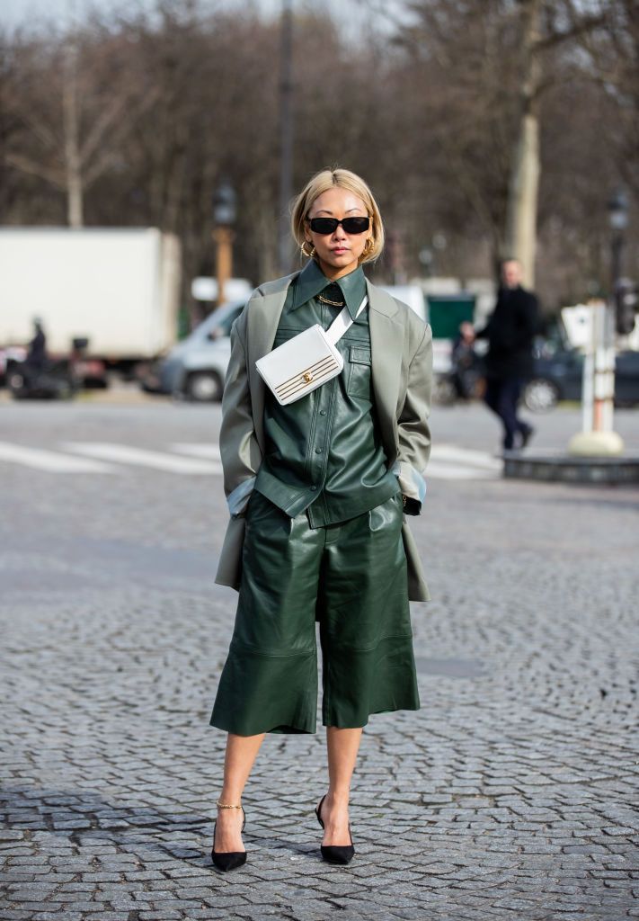 El truco está en suavizar el impacto visual del cuero con tejidos más ligeros. Una camisa blanca ligeramente oversize o un top de punto fino pueden transformar por completo el conjunto, aportando frescura y naturalidad al look. El resultado es una estética pulida pero sin esfuerzo, perfecta para la primavera.