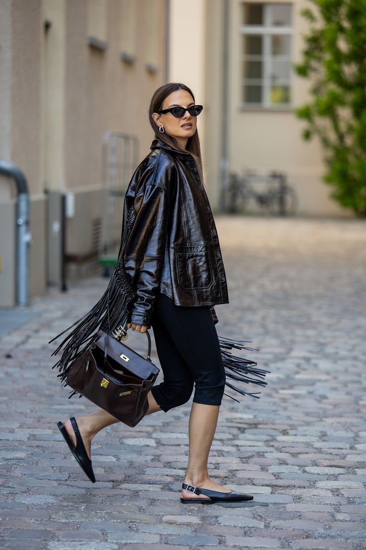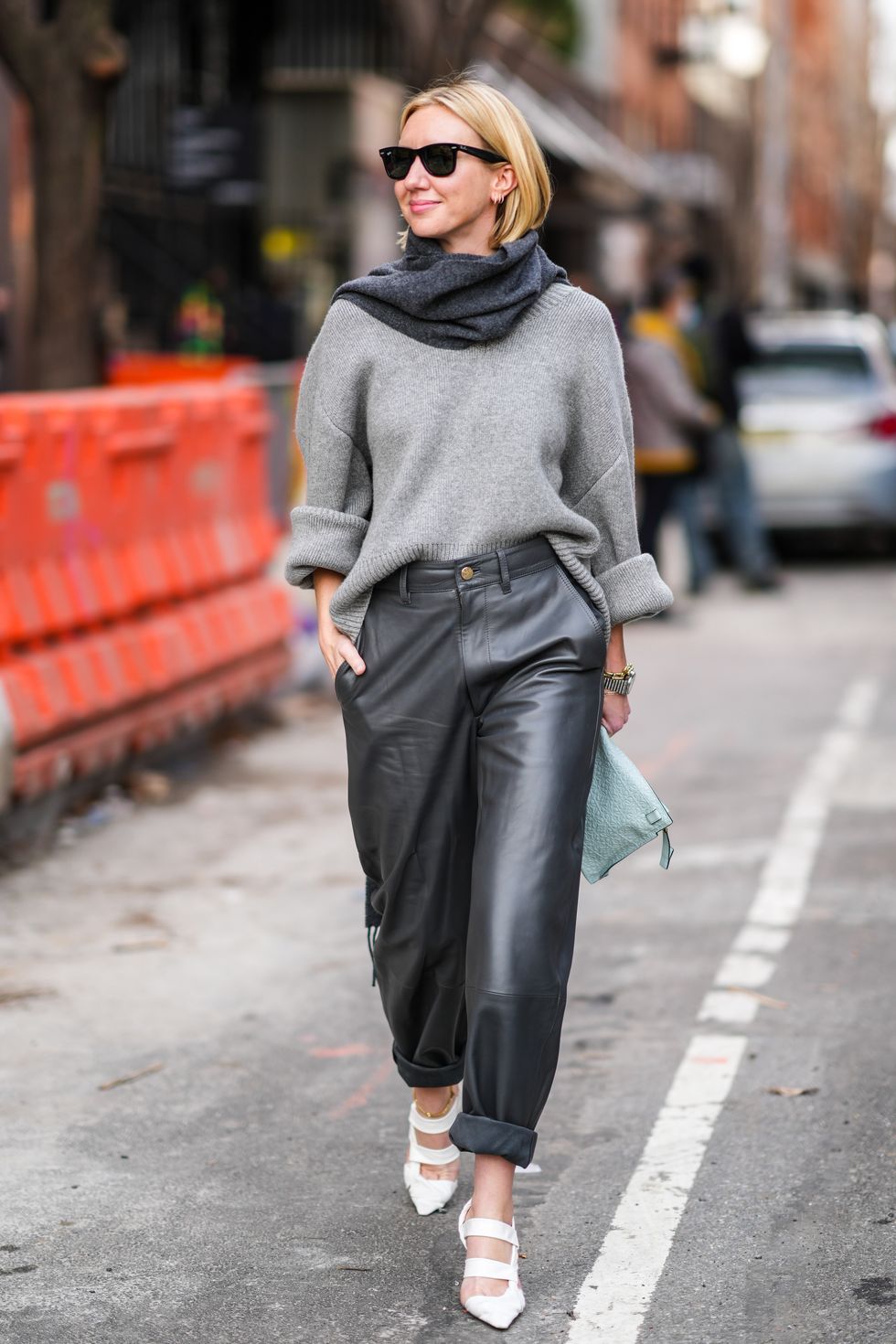 Los pantalones de efecto piel rompen con la estacionalidad y se posicionan como una opción versátil incluso en primavera. Su textura aporta carácter y estructura al look, ideal para días de clima cambiante. Se combinan fácilmente con prendas ligeras, creando un contraste interesante entre materiales.