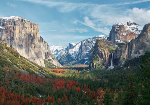 Yosemite es famoso por sus acantilados de granito, cascadas y bosques de secuoyas gigantes. Lugares como El Capitan o Half Dome son referentes tanto para excursionistas como para escaladores. El parque ofrece una combinación de accesibilidad y paisajes de gran escala que lo han convertido en uno de los más fotografiados del mundo.