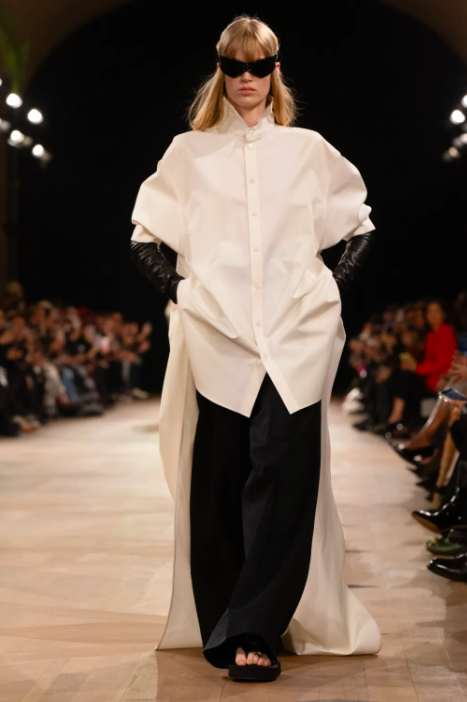 Entre los guiños al legado de Demna – como las camisetas semitransparentes o las siluetas cuadradas – y las referencias a los años dorados de la casa, la propuesta reveló un equilibrio entre lo conceptual y lo cotidiano.