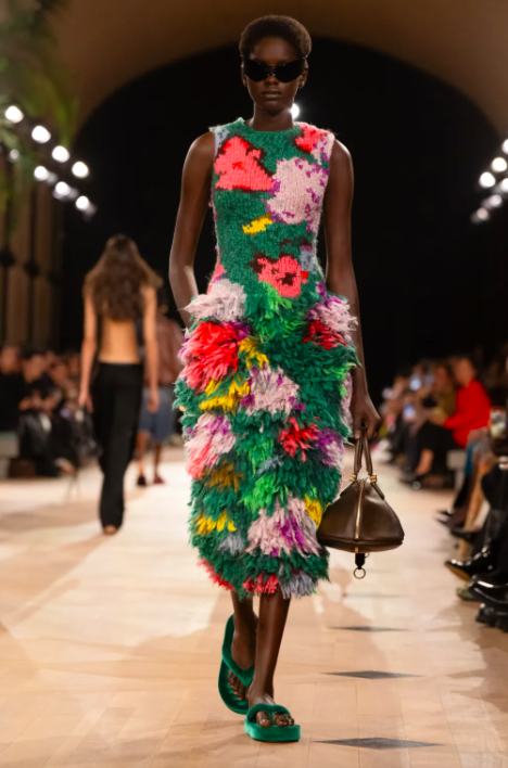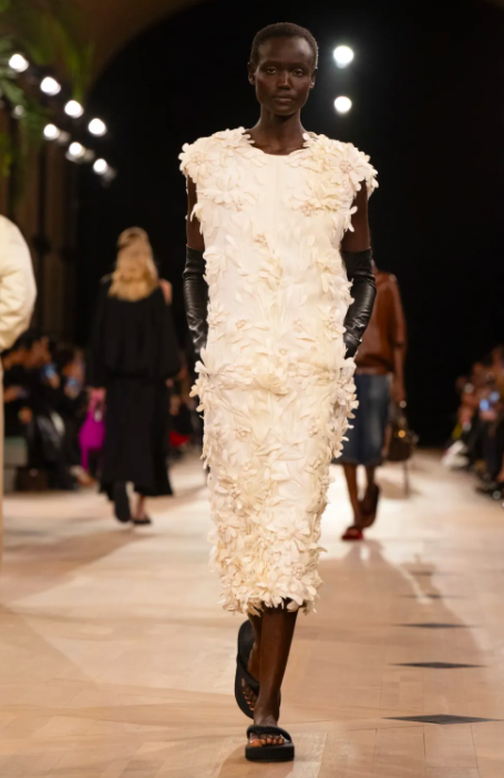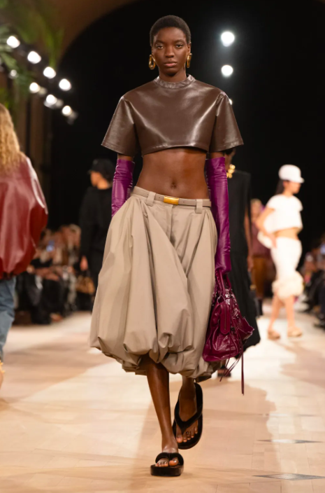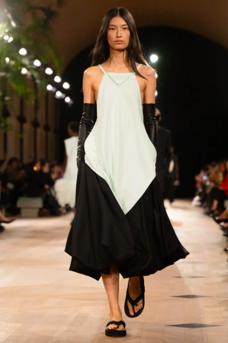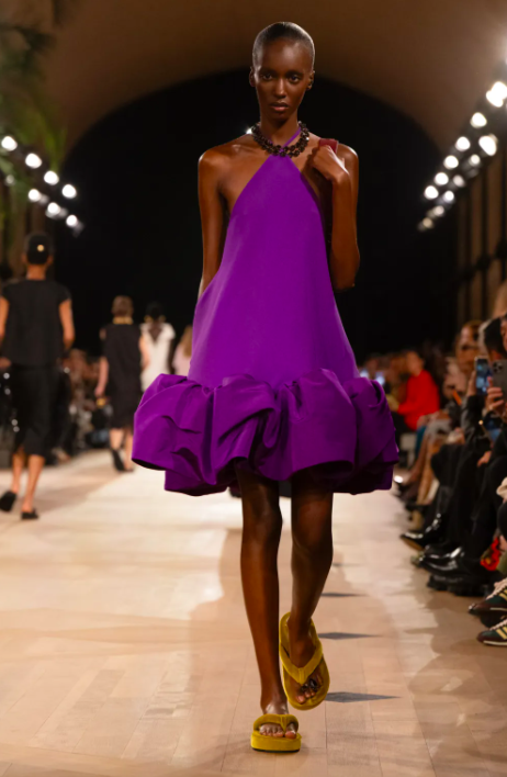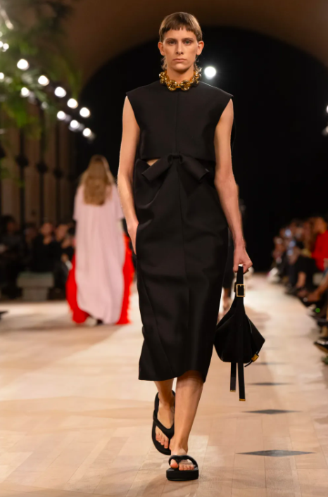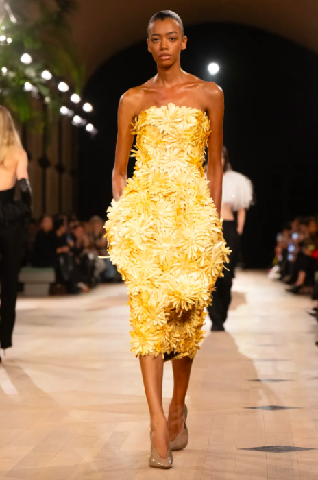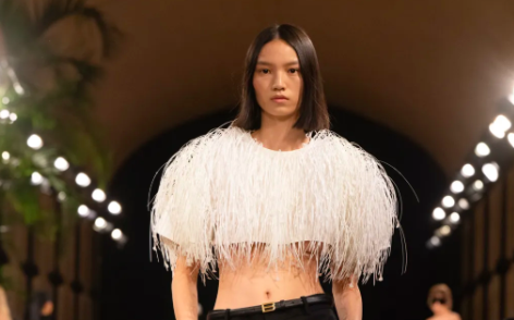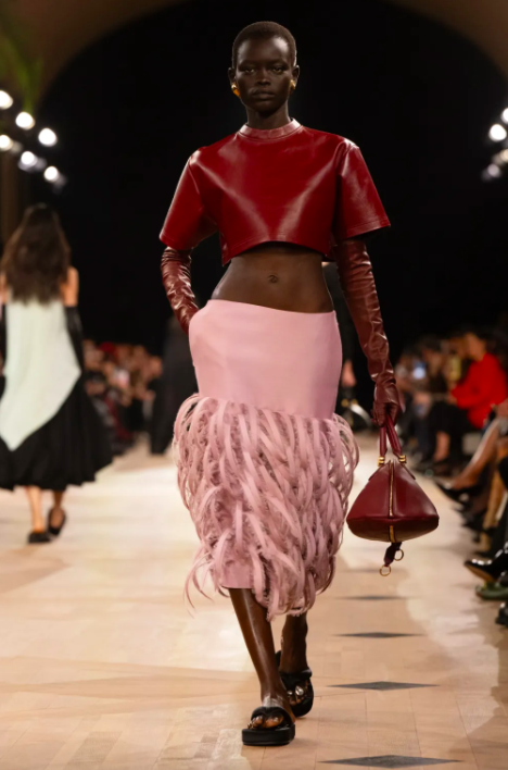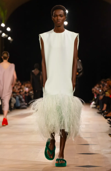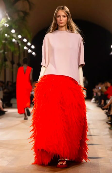 En su estreno, Piccioli también llevó consigo la esencia de lo que hizo en su era en Valentino: romanticismo y color. Las faldas de plumas, los guantes de ópera y los tonos planos fueron testimonio de una visión estética refinada, pero con un toque juvenil y libre.