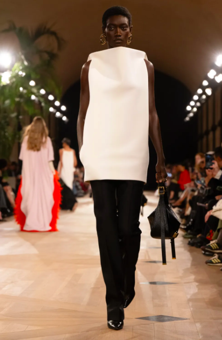 La propuesta del diseñador italiano fue una fusión entre lo clásico y la ironía contemporánea. Una mezcla entre el glamour cinematográfico del siglo XX y la inmediatez del siglo XXI, definiendo el espíritu de la colección. En el front row se sentaron las celebridades más fieles a la marca, como Anne Hathaway, FKA Twigs, Meghan Markle y Lauren Sánchez.