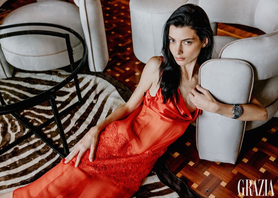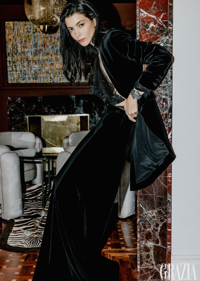 38 mm, automático, Audemars Piguet. Vestido en terciopelo y botas en piel, Dior.