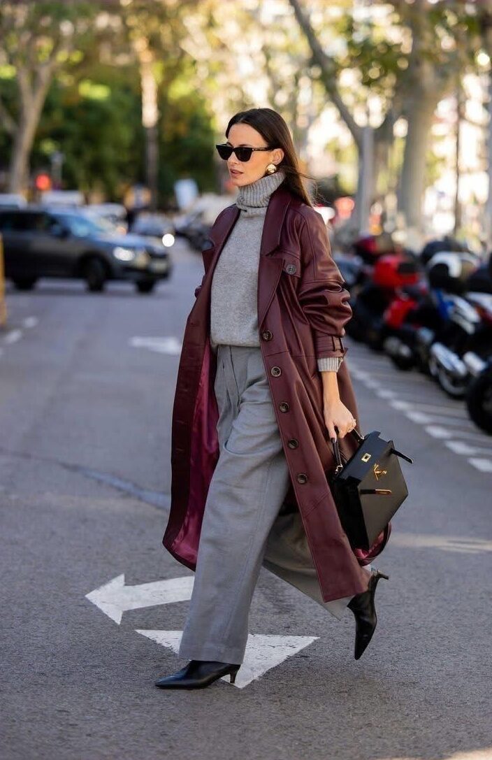 En la primavera 2026, el contraste entre los tonos neutros y el burgundy crea una armonía visual muy valorada en el street style de lujo. Este enfoque permite que la fuerza del color resida en los detalles, manteniendo una estética limpia y pulida.