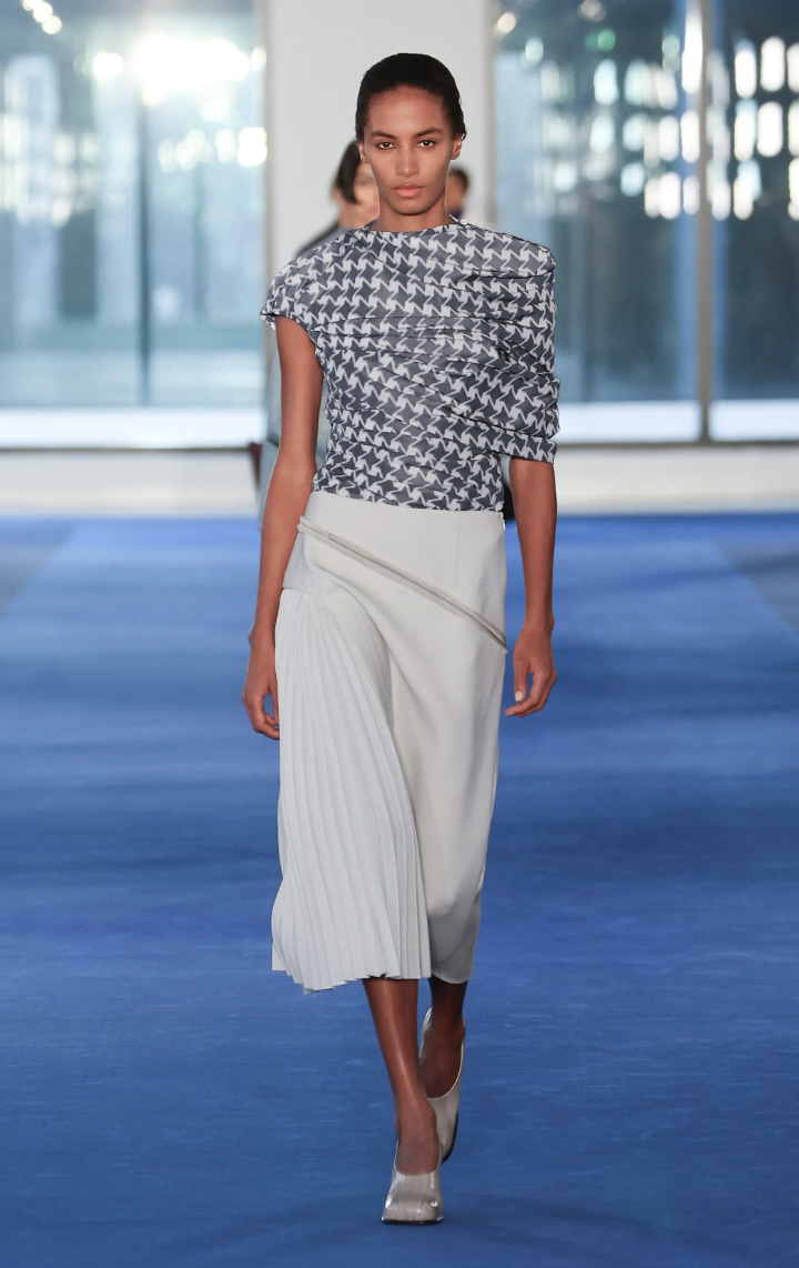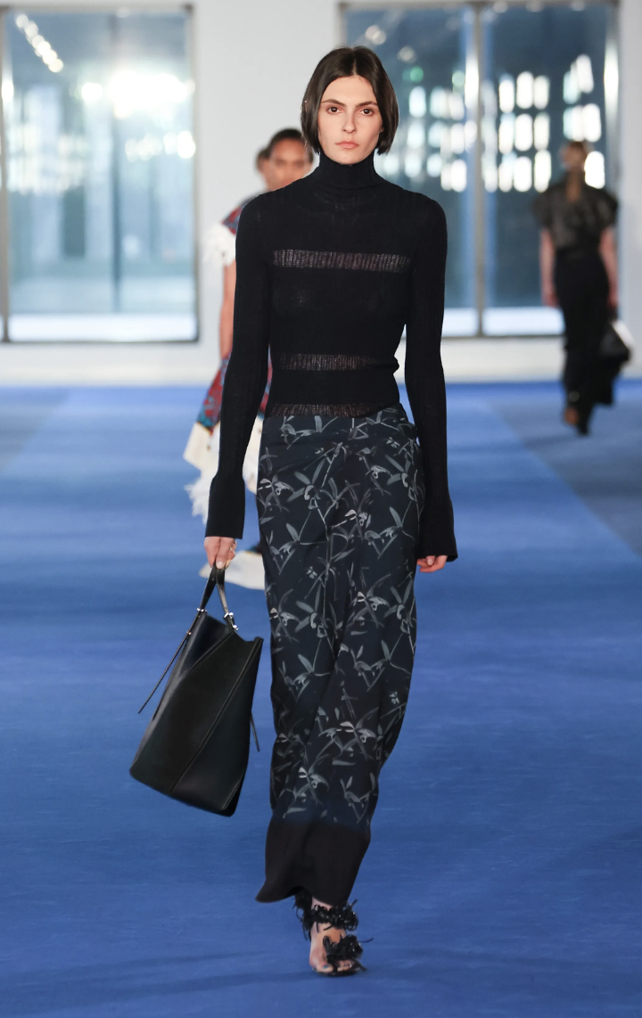 Asumir el legado de una casa reconocida por su impecabilidad estructural no es tarea menor. Durante años, Proenza Schouler construyó una estética asociada a la precisión, el intelecto y una sofisticación casi intocable. Scott decide conservar esa base, pero introducir una dimensión más orgánica. Su mujer mantiene disciplina y elegancia, aunque ahora se permite complejidad, textura y una sensualidad menos rígida.