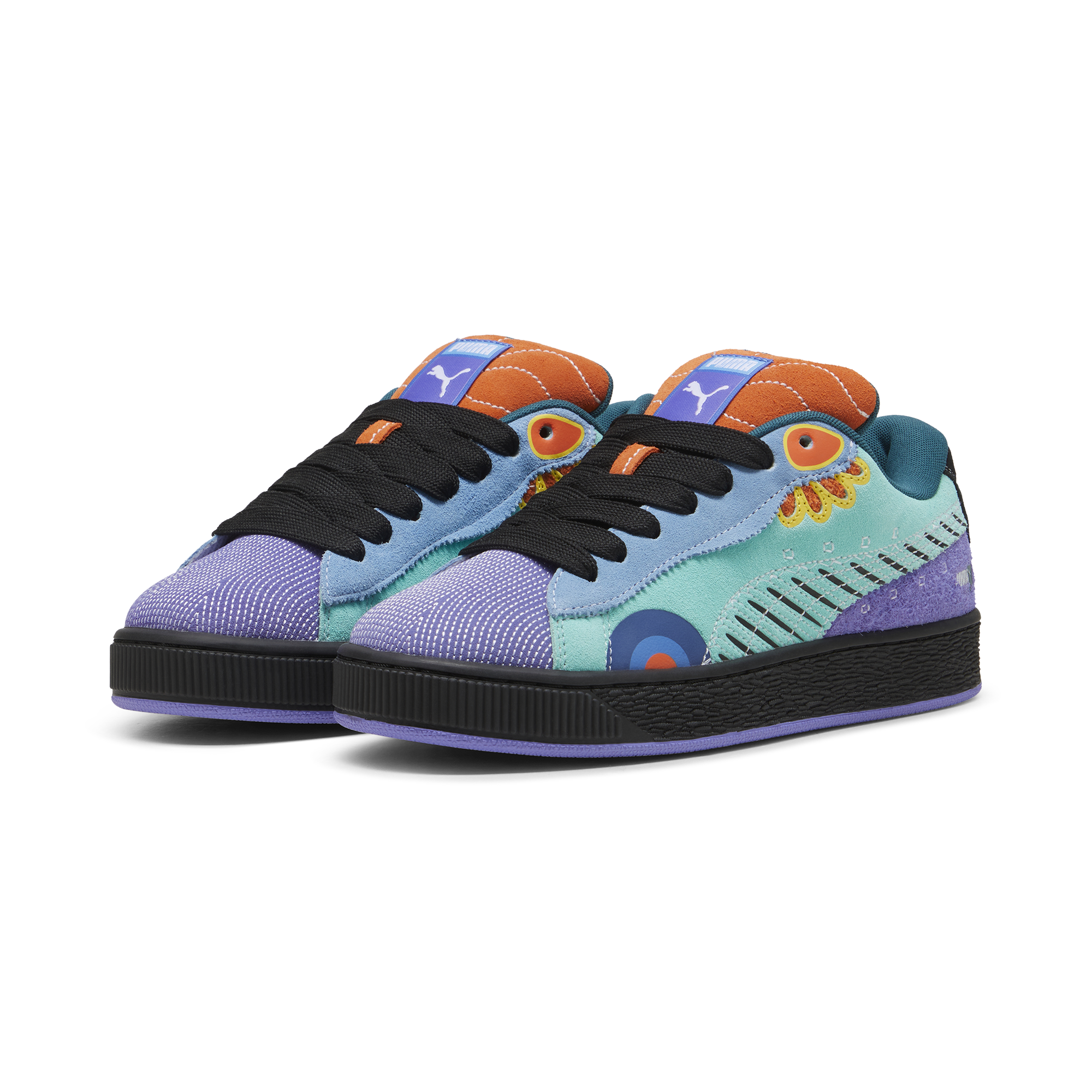 La colección presenta una versión especial de su icónica silueta Suede XL, la cual se adorna con texturas y bordados que evocan de manera abstracta los elementos tradicionales de la festividad.
