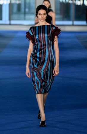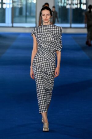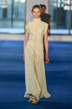 Este debut formal de Scott en Proenza fue el desfile más esperado de la semana. Hasta ahora, se han vislumbrado indicios del recorrido que quiere emprender con la clienta, ya que el desfile de septiembre incluyó detalles de su toque personal y una nueva campaña publicitaria lanzada recientemente, centrada en la autenticidad. Scott compartió con franqueza que ha sido meticulosa al estudiar la marca y sus códigos, identificando los colores, su conexión con el arte, la sastrería y la artesanía. Los fundadores, Lázaro Hernández y Jack McCollough, aman a las mujeres; ella lo tiene claro. Pero, al ser mujer, aporta un matiz diferente a la marca. “El perfeccionismo me parece una especie de prisión”, dijo un día antes de su debut, contrastando la idea de idolatrar a una mujer con ser una.