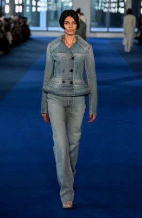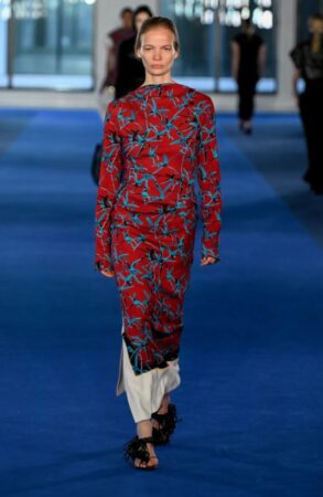 La forma se revisó en todo el desfile, por ejemplo, con su propio atuendo de chamarra vaquera en tonos arena y un traje. Se percibía una tensión vibrante entre la mano y la máquina, como sus estampados de orquídeas, primero fotografiados, pintados encima y luego digitalizados sobre vestidos con flecos y conjuntos, recuperando a la mujer Proenza Schouler, sencilla y moderna, con nuevas ideas para la actualidad.