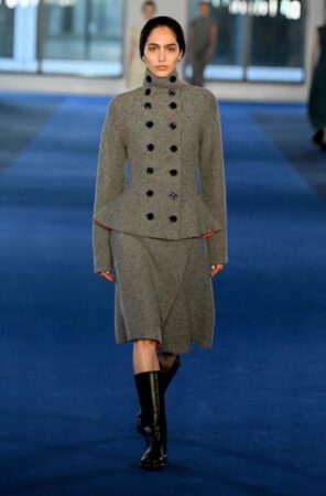 Rachel Scott fue nombrada directora creativa de Proenza Schouler días antes de la presentación de la marca en la semana de la moda de Nueva York el pasado septiembre. Sin embargo, el desfile de hoy fue su verdadero adelanto inaugural, ya que fue la primera colección en la que trabajó de principio a fin tras reemplazar a los fundadores de la marca, Jack McCollough y Lázaro Hernández, quienes se mudaron a París y tuvieron la oportunidad de dirigir Loewe. Un gran grupo de diseñadores, entre ellos María Cornejo, Verónica Leoni de Calvin Klein y Raúl López de Luar, acudieron para apoyar a Scott, quien presentará un desfile para su propia marca, Diotima, en tan solo cuatro días.