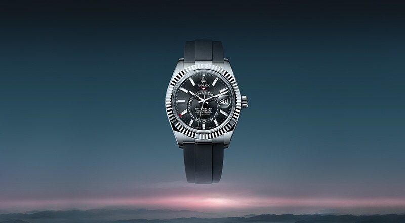 El Oyster Perpetual Sky-Dweller se ha renovado con mejoras estéticas y técnicas. Una versión en oro blanco de 18 quilates, provista de un brazalete Oysterflex, es la incorporación más notable a la gama. Entre los relojes presentados, la modalidad en versión Rolesor blanco está dotada de una esfera verde menta y la de oro Everose de 18 quilates, de una esfera azul-verde, una nueva tonalidad. El Sky-Dweller adopta además un movimiento optimizado, el calibre 9002.