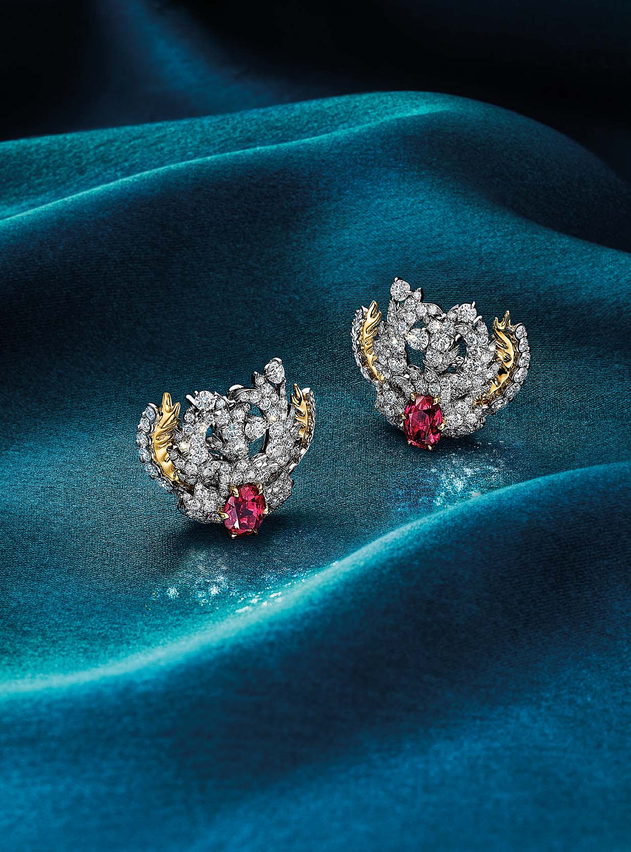 Louis Comfort Tiffany, el primer director de diseño de la casa y pionero del movimiento Art Nouveau, fue designado por el reconocido arquitecto Adamo Boari para diseñar nada menos que el espectacular telón de mosaico de vidrio del Palacio de Bellas Artes en la Ciudad de México. El pajarito se posa arriba de una turmalina verde de 24.48 quilates proveniente de Brasil, acompañada por 14 esmeraldas y 57 rubíes. La majestuosa ave requirió de más de 150 horas de elaboración, con un peso total cercano a los 3 quilates y diamantes que superan los 2 quilates en conjunto. Por primera vez, el engaste de las gemas cubre perfectamente a la icónica ave para exaltar el colorido que le da vida a esta fabulosa pieza de alta joyería que conmemora la íntima relación entre Tiffany&Co. y nuestro país, celebrando así los fuertes lazos que los unen.