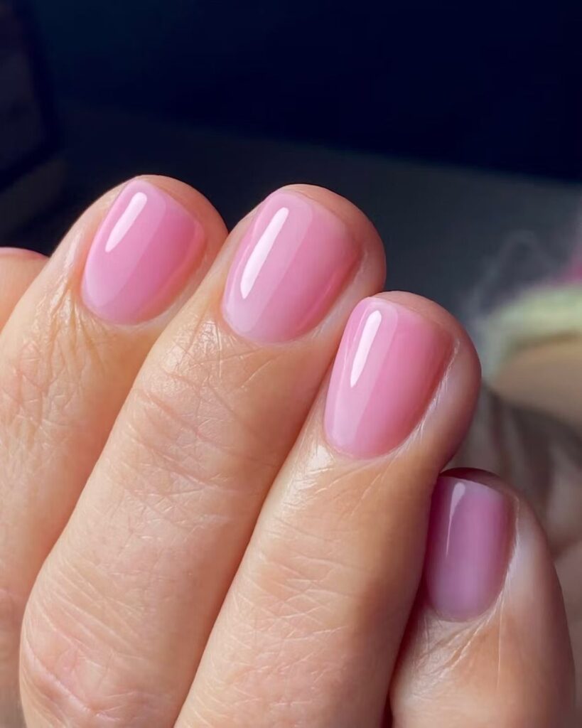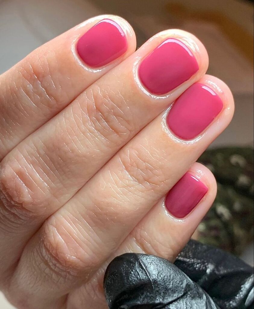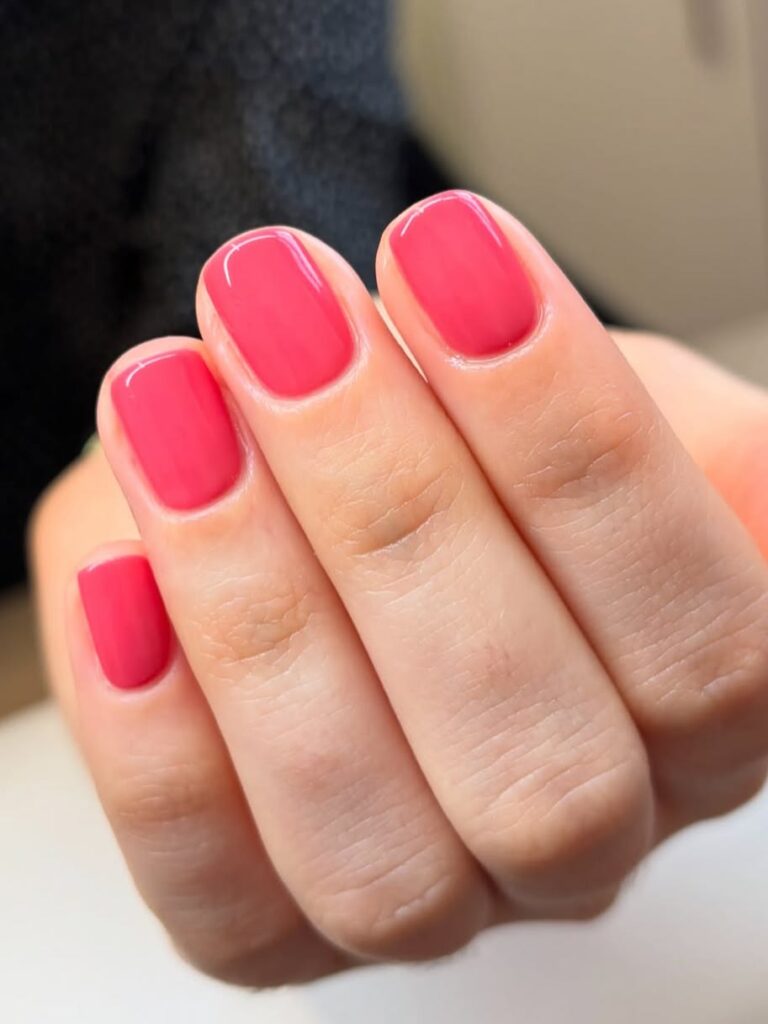 Los tonos más intensos irrumpen como una declaración de intención. El rosa pop, inspirado en referencias lúdicas y culturales, aporta una energía vibrante que transforma la manicura en un punto focal del look. Funciona especialmente bien en uñas cortas y redondeadas, donde el color se convierte en protagonista absoluto y añade un contraste audaz a estilismos neutros.