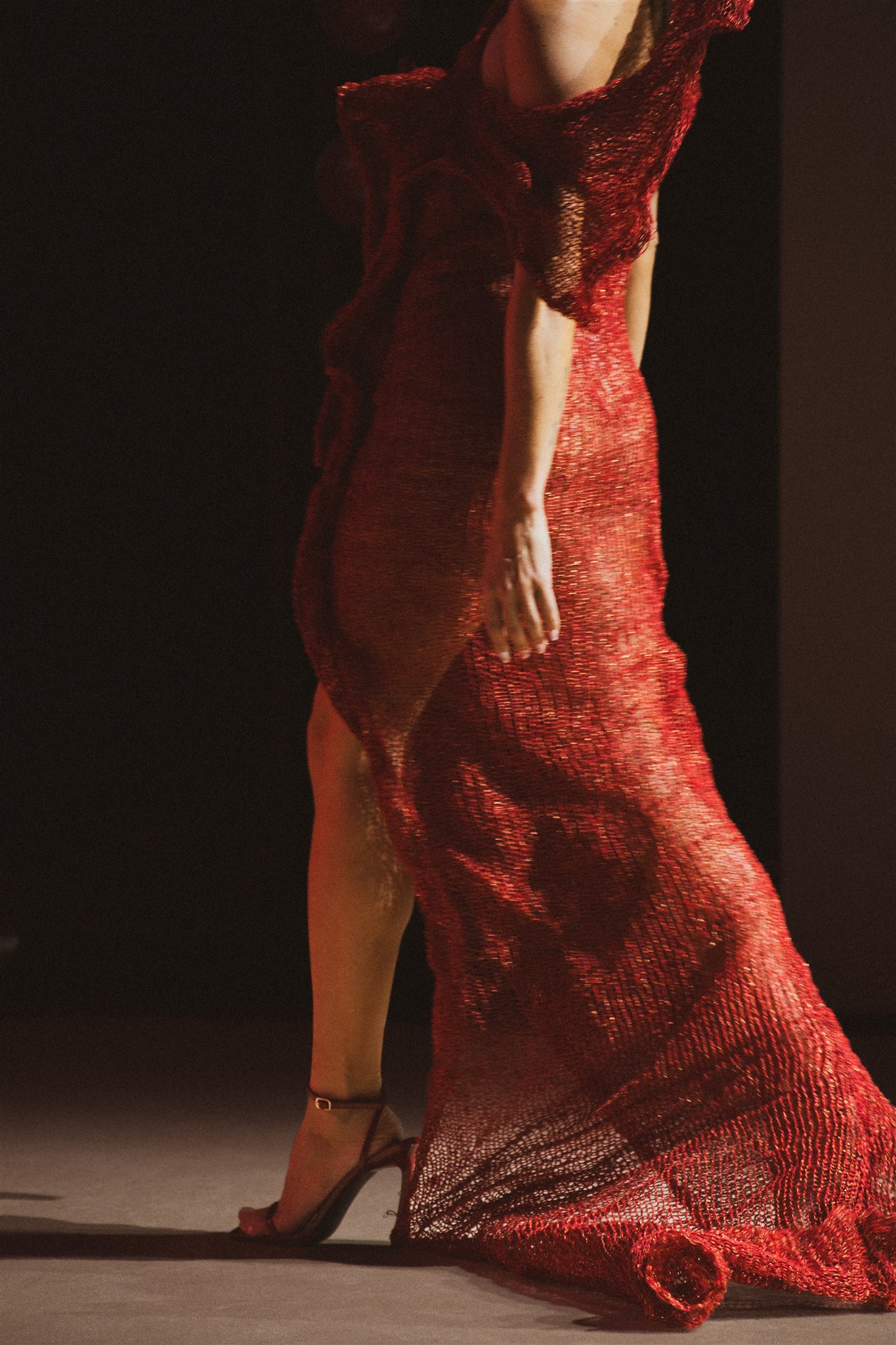 Y lo más poderoso de la colección es recuperar el tejido, no solo como una técnica, sino como un lenguaje que sigue vigente en el mundo contemporáneo, rindiendo homenaje al arte de contar historias con las manos.