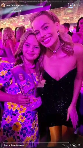 La joven actriz de 14 años, Sofía Sánchez, logró posar en una fotografía junto a Margot Robbie, luego de sus esfuerzos para defender la existencia de la primera Barbie con síndrome de Down de Mattel, condición que ella tiene.