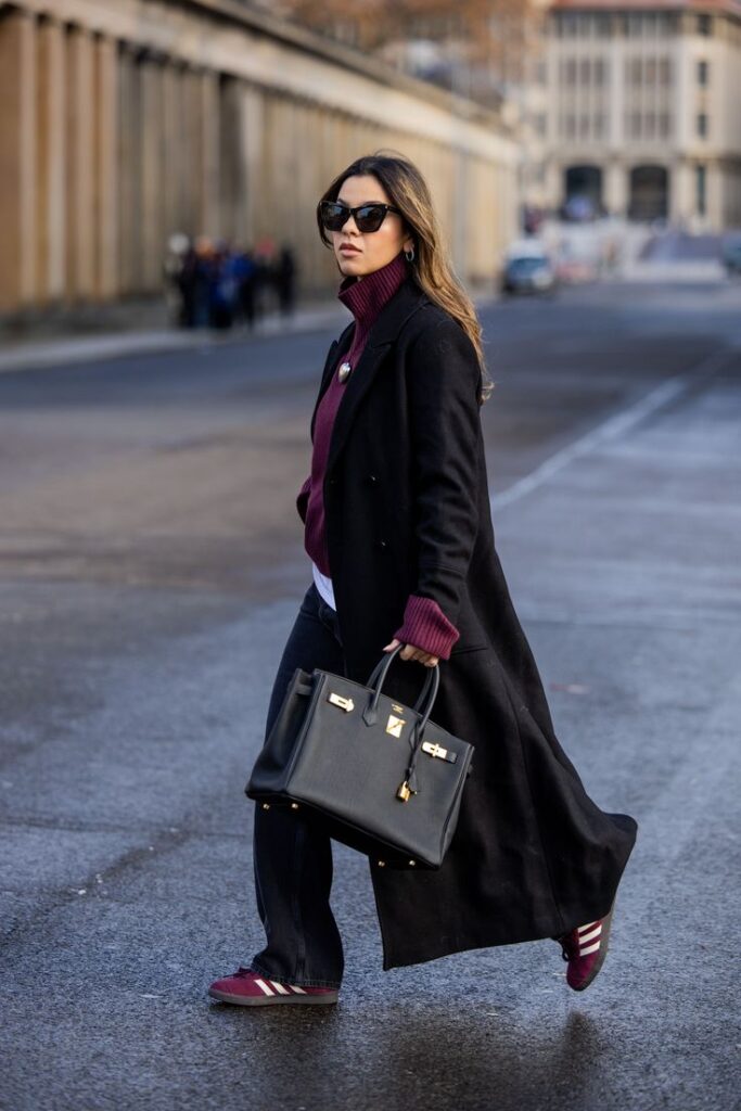 Una de las combinaciones más intrigantes y modernas es la de los tenis burdeos con pantalones color café. Esta tendencia ha conquistado las expertas en moda de Nueva York, quienes adoptan la mezcla de colores como parte de su estilo cotidiano.