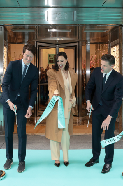 Para conmemorar la renovación de la tienda desde que abrió sus puertas por primera vez en 1940, Anthony Ledru, Presidente y Director Ejecutivo; Alexandre Arnault, Vicepresidente Ejecutivo de Producto y Comunicación de Tiffany & Co; y Gal Gadot, cortaron el listón Tiffany Blue en la ceremonia.