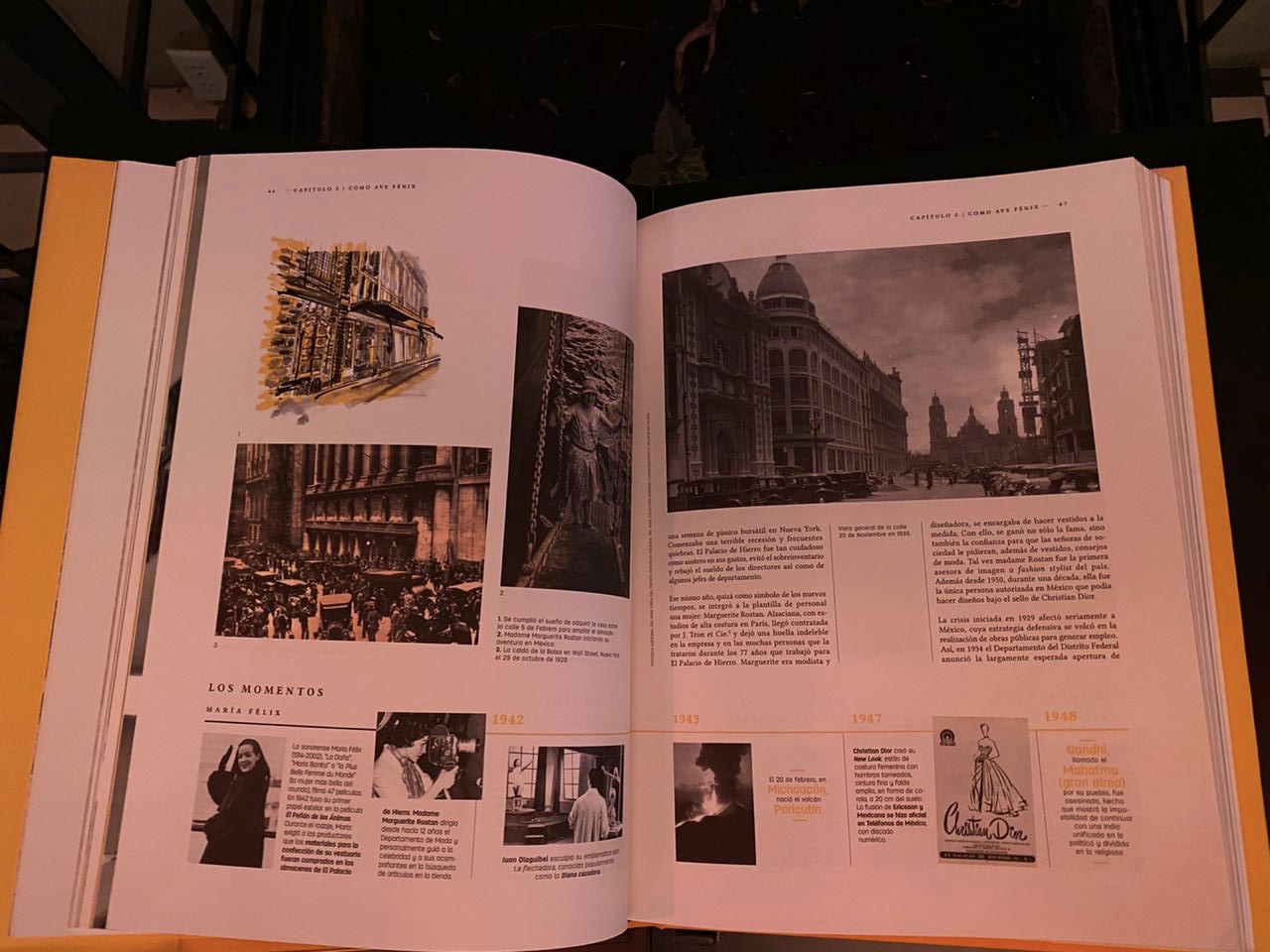 Es importante mencionar que esta ‘Historia extraordinaria’ tiene dos niveles de lectura: el texto central que es el que narra la historia de El Palacio de Hierro y otra línea del tiempo que retrata la época en que se iban desarrollando todos los acontecimientos; es decir, el ambiente que rodeaba ese preciso momento del que se habla en cada página.