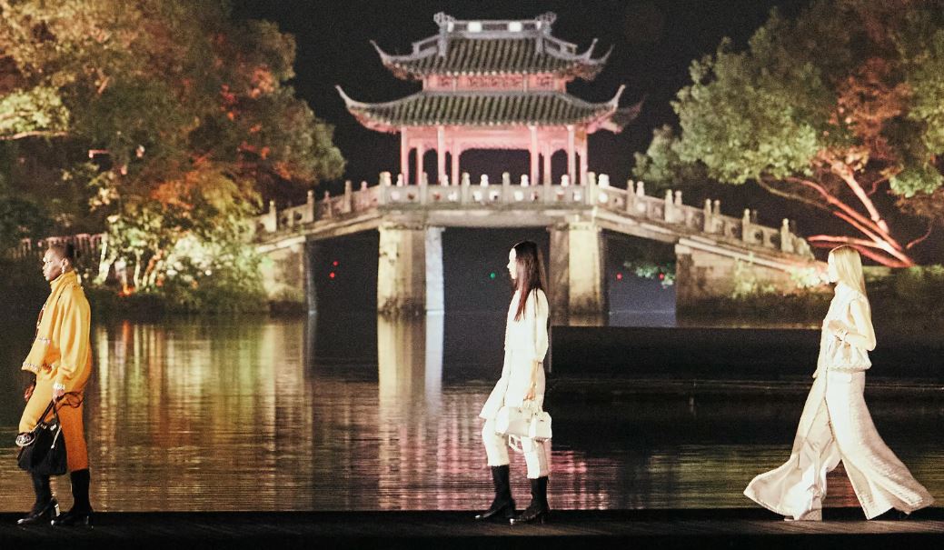 “Al viajar a Hangzhou, China, para presentar su Colección Métiers d’art 2024/25, la Maison explora un componente esencial del imaginario de Gabrielle Chanel: los biombos chinos lacados que la hicieron soñar toda su vida y que aún adornan las paredes de su apartamento en el 31 de la rue Cambon de París. El de su despacho representa la ciudad de Hangzhou y su legendario lago”, agrega.
