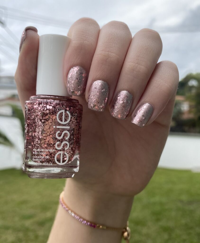 Para lograr un resultado profesional, comience aplicando una base protectora que fije el color. Luego, puede optar por una capa de esmalte rosa tradicional y finalizar con Essie LuxeEffects, o aplicar directamente dos capas del esmalte con brillantina para intensificar el destello. Es fundamental controlar la cantidad de producto, ya que las partículas brillantes son más densas y requieren precisión.