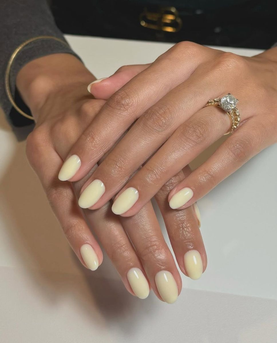 El amarillo regresa en clave suave y luminosa. En su versión más clara, funciona como un acento sutil que ilumina las manos sin resultar estridente. Es la elección perfecta para quienes desean incorporar color de forma discreta pero contemporánea.